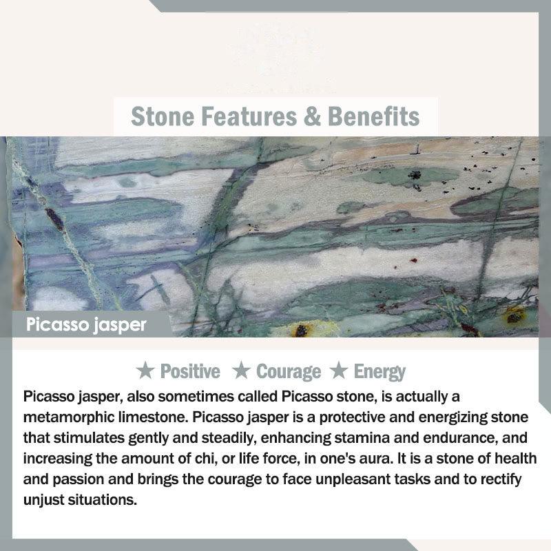 - Material: Bloodstone, Black Malachite, Yellow Aventurine, Dark Pink White Stone, Red Picasso Jasper, Rhodonite, Frosted Stone, Blue Sandstone, Dendritic Agate, Green Dot Jasper, Lazurite, Black Glass, Dalmatian Jasper, Glitter Stone, Lepidolite, Miscellaneous Stones, Indian Agate, Picasso Jasper, Deep Blue Cat's Eye, Blue Agate, Aquamarine(Synthetic), Mexican Jade, Shoushan Stone,Mookaite, Pink Zebra Jasper, Green Cat's Eye, Sodalite, Yellow Turquoise, Dragon Blood Stone, African Blood Stone, Red Turquoise, Russian Jade, Fluorite, Amazonite, Blue Cat's Eye, White Fossil, Topaz, White Turquoise, Crazy Lace Agate