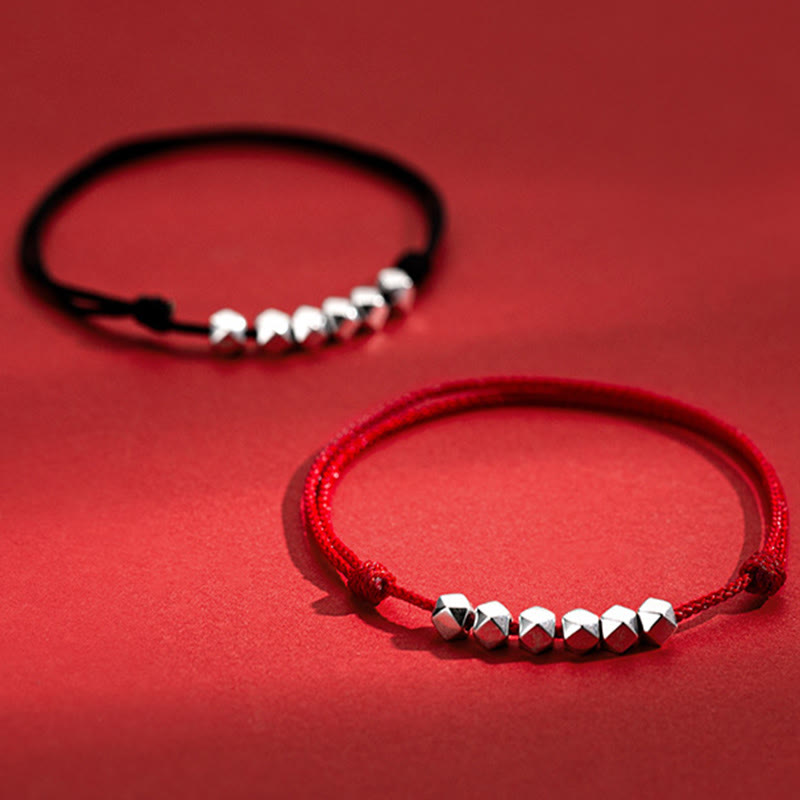 Buddhist Blessing 925 Sterling Silver Beads Luck Protection Braid Rope Anklet