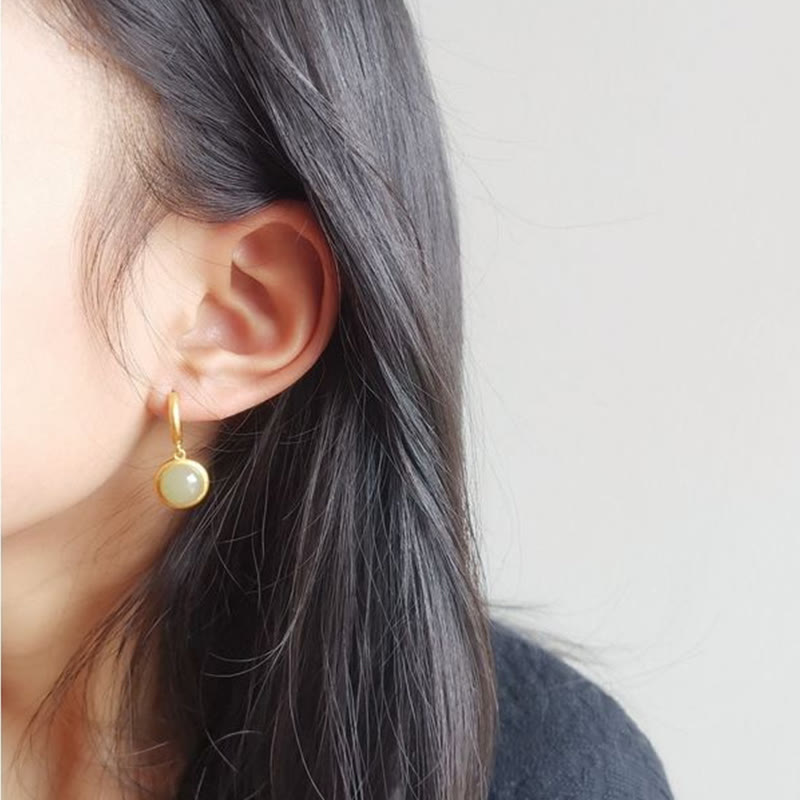Buddhist Blessing 925 Sterling Silver White Jade Agate Prosperity Earrings