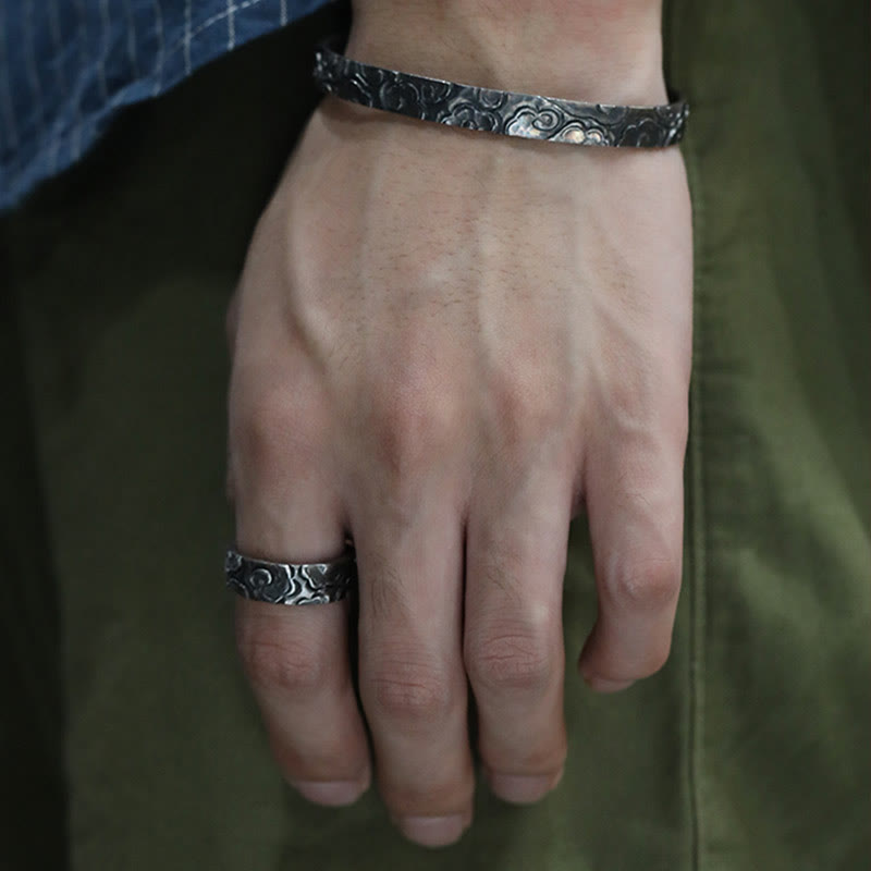 Auspicious Clouds Silver Ring features intricately carved cloud patterns symbolizing protection and blessings. Made from 999 sterling silver, this adjustable ring offers a meaningful design that reflects balance and peace. Ideal for those seeking spiritual protection and strength, the ring's auspicious clouds represent good fortune, creating a perfect symbol for spiritual growth and mindfulness.💕