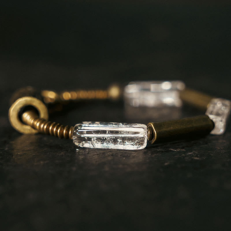 Buddhist Blessing Copper Square White Crystal Luck Bracelet