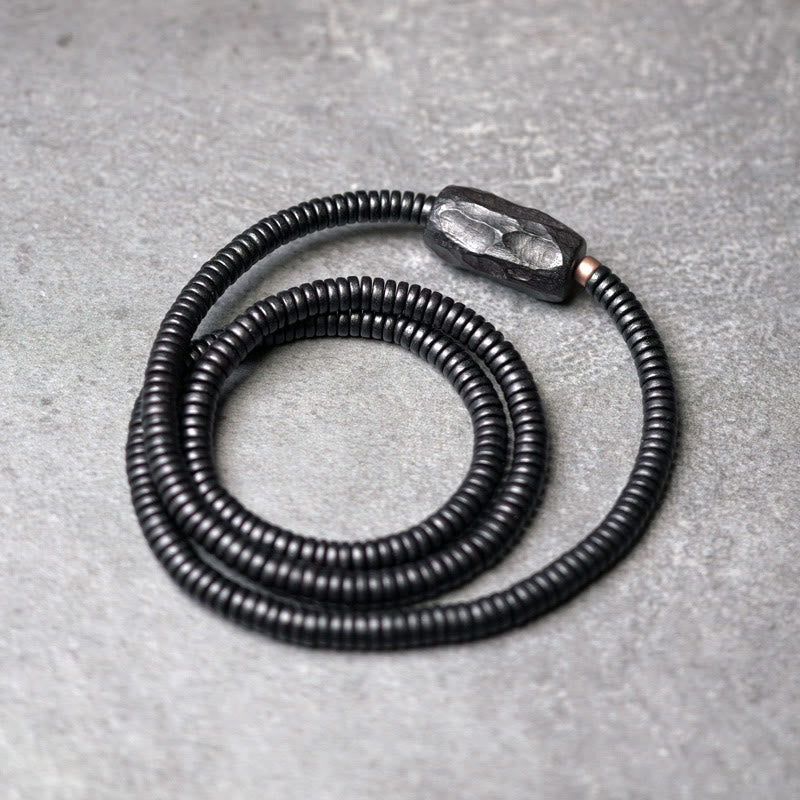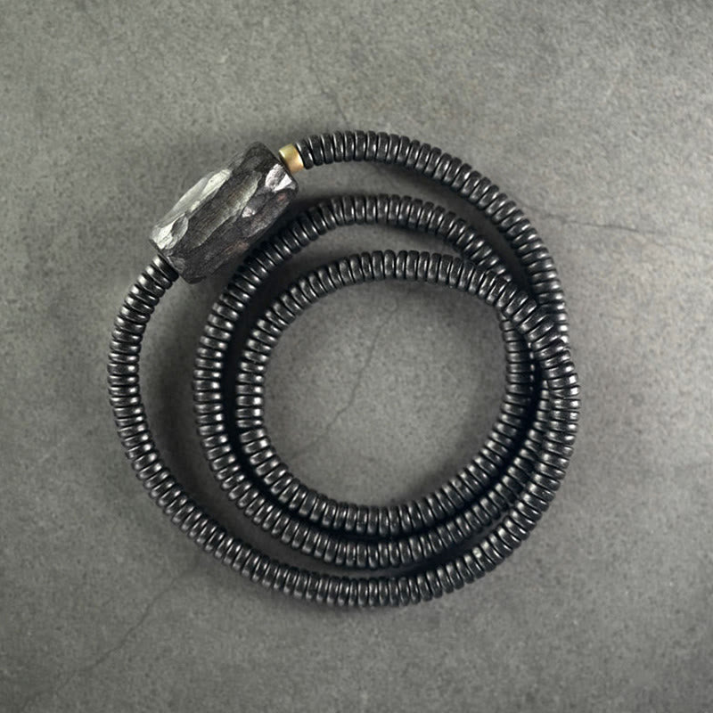 Ebony Wood Triple Wrap Bracelet features Ebony Wood roller beads with a cylindrical Ebony Wood centerpiece. Copper accents complement the natural wood, creating a harmonious design. This bracelet symbolizes grounding, inner peace, and balance. The materials, including the sturdy Ebony Wood, support a sense of stability and calm. Its unique triple-wrap structure ensures comfort and a secure fit.💕