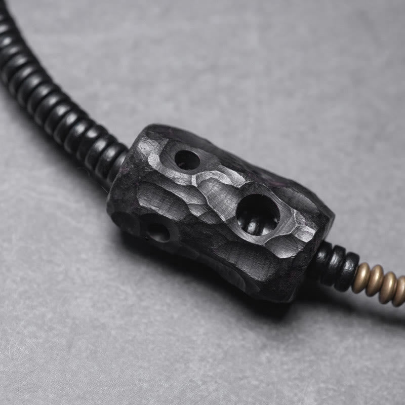 Buddhist Blessing Ebony Wood Copper Brass Red Agate Peace Double Wrap Bracelet