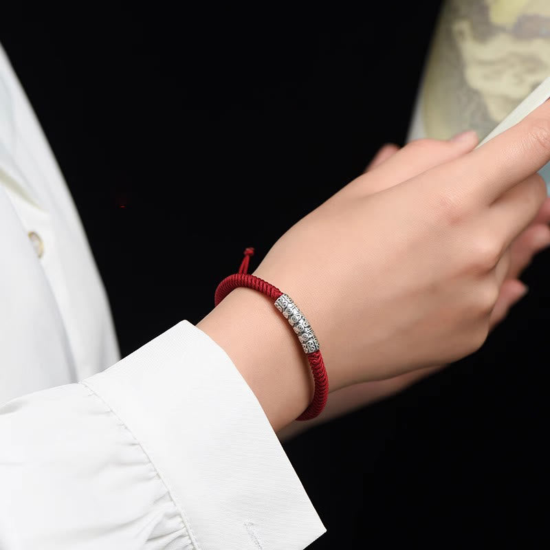 Buddhist Blessing Handmade 999 Sterling Silver Peace and Good Fortune Om Mani Padme Hum LuckĀ Rope Bracelet