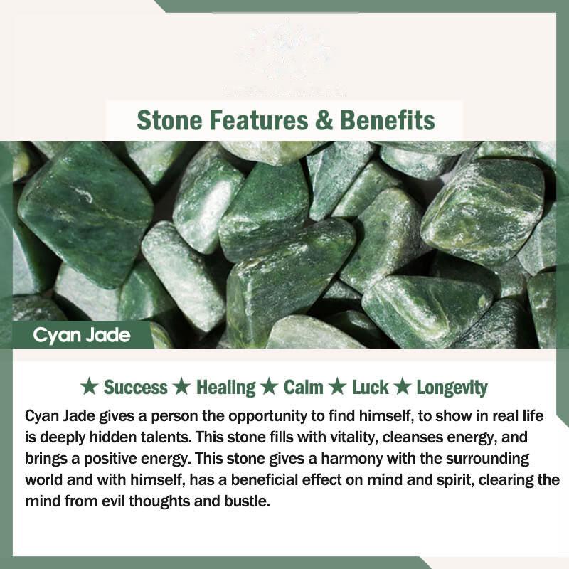 Cyan Jade gives a person the opportunity to find himself, to show in real lifeis deeply hidden talents. This stone fills with vitality, cleanses energy, and brings a positive energy. This stone gives a harmony with the surrounding world and with himself, has a beneficial effect on mind and spirit, clearing them from evil thoughts and bustle.