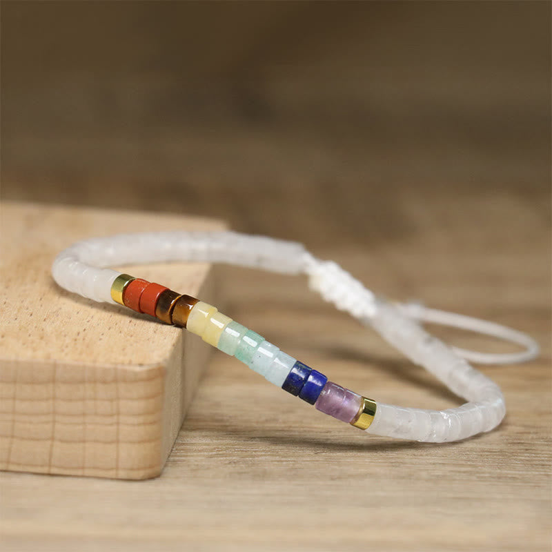 Buddhist Blessing Natural White Crystal Black Onyx Clarity Spacer Bead Bracelet