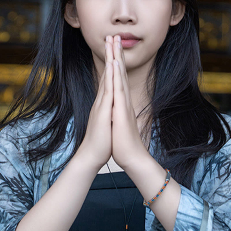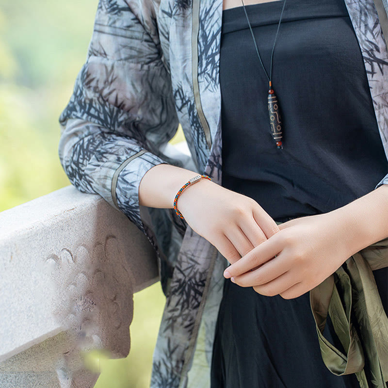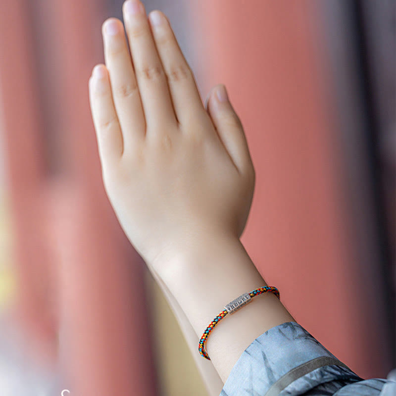 Buddhist Blessing Red String Black String Six True Words 925 Sterling Silver Luck Bracelet