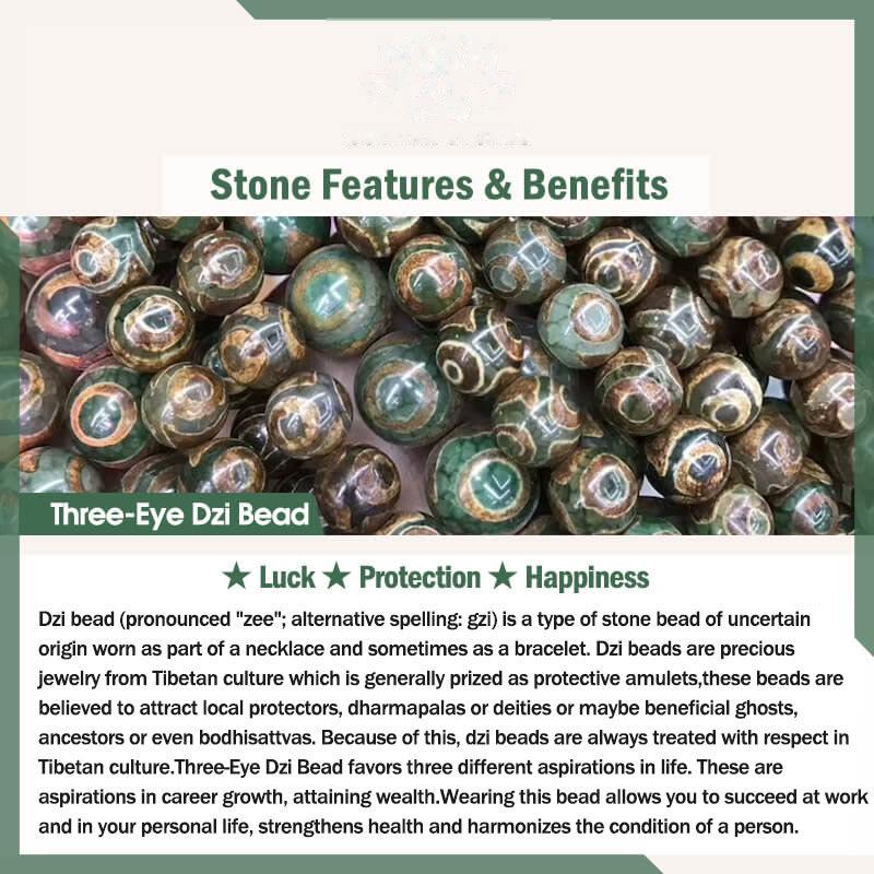 Three-Eye Dzi Bead favors three different aspirations in life. These are aspirations in career growth, attaining wealth, longevity.