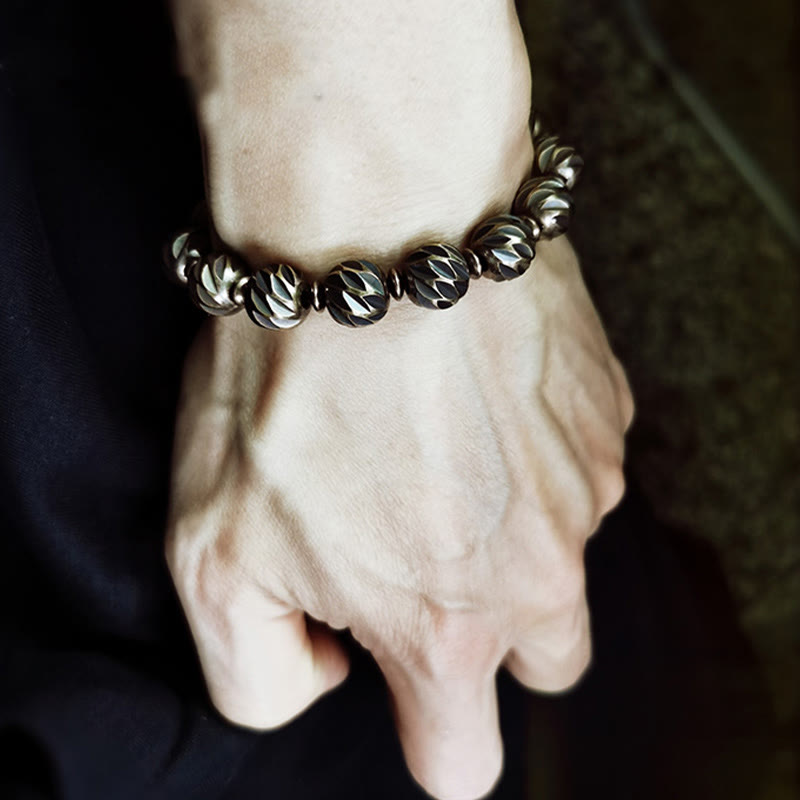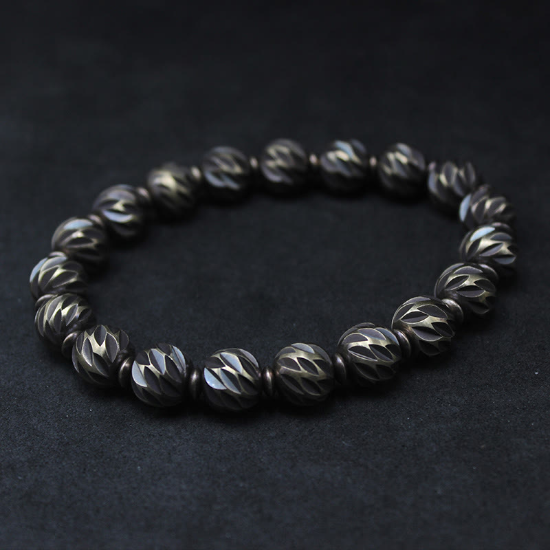 Buddhist Blessing Vintage Distressed Knife Carving Pattern Copper Brass Beads Wealth Bracelet