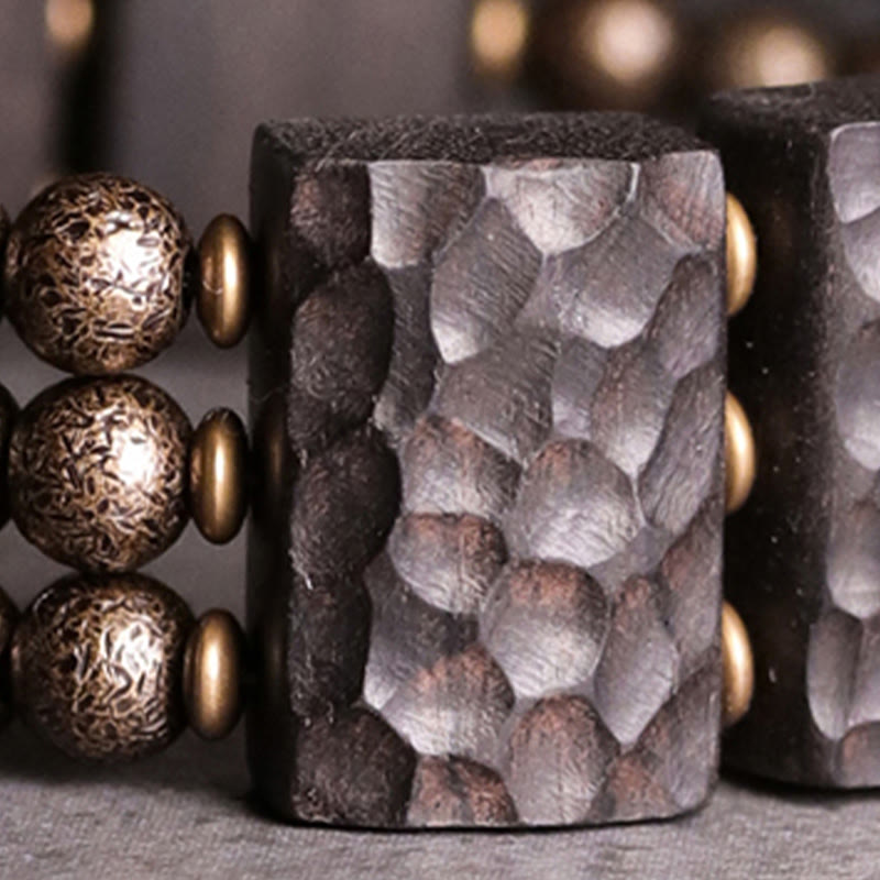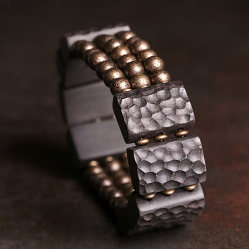 Buddhist Blessing Vintage Peace Ebony Wood Copper Beads Balance Bracelet