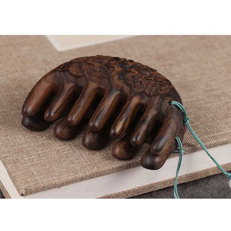 Green Sandalwood Plum Blossom Flowers Lotus Koi Fish Engraved Soothing Tassel Comb