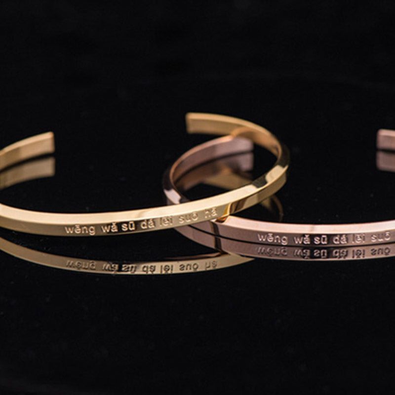 Experience harmony with our Buddha Stones Six True Words Bracelet, handcrafted from high-quality titanium steel. The engraving carries a potent Tibetan mantra, revered for manifesting love, wisdom, and peace. This adjustable, spiritually enriching bracelet is a perfect addition to your journey towards mindfulness and tranquility.