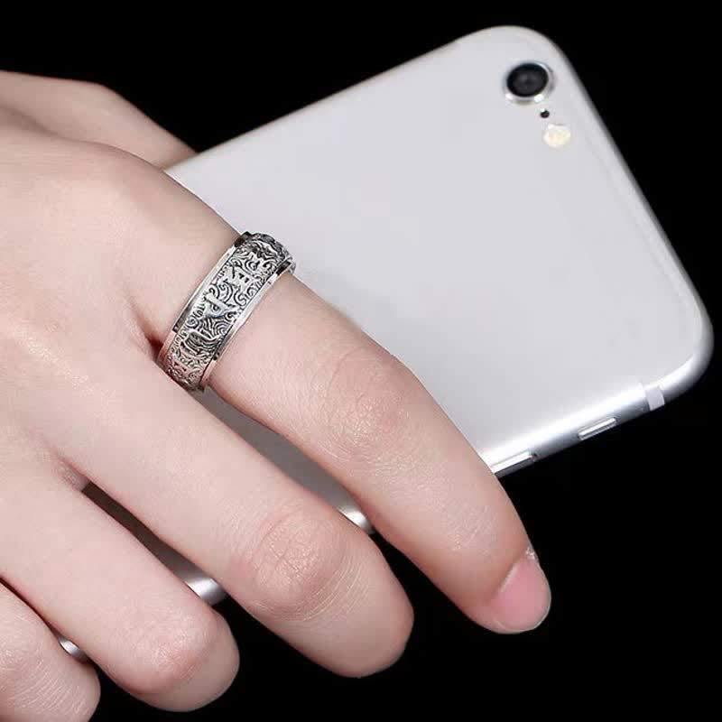 Buddha Stones Six True Words Swastika Copper Healing Rotatable Ring