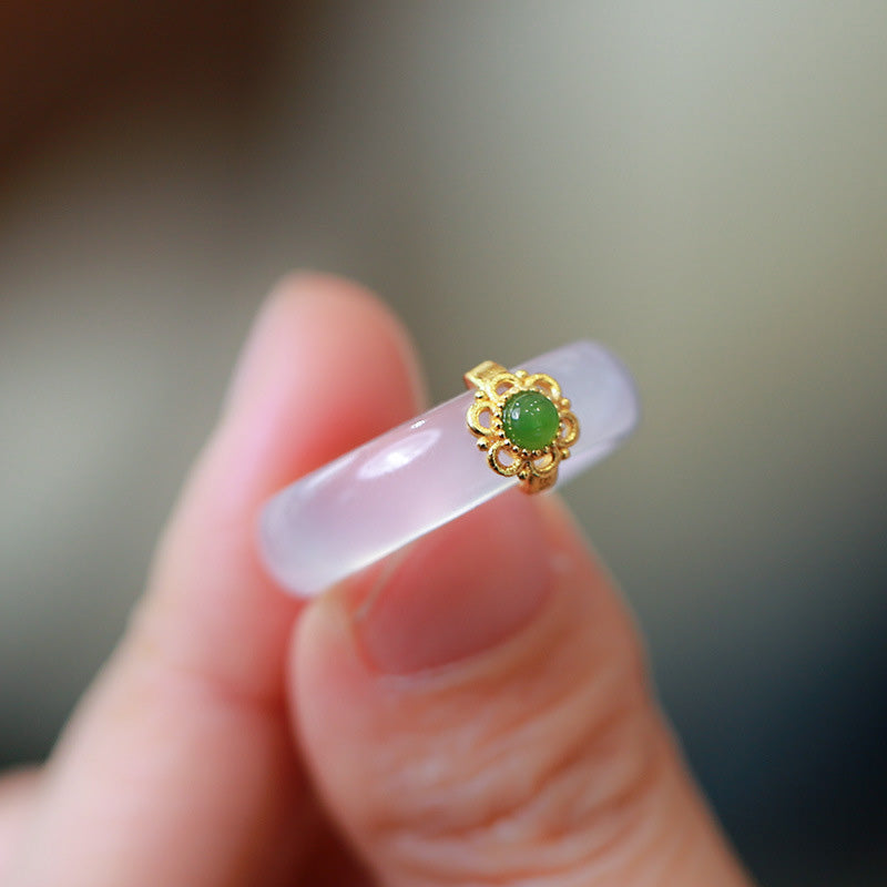 Buddha Stones White Agate Cyan Jade Turquoise Red Agate Luck Protection Ring